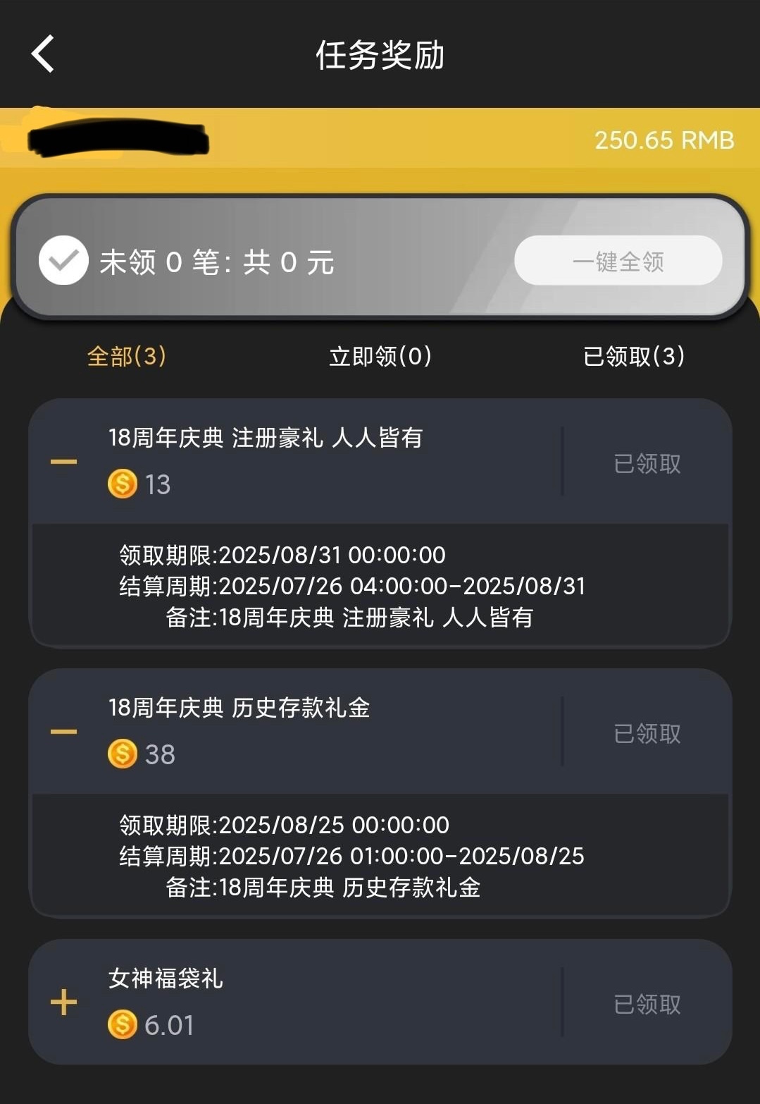 有号的兄弟可以登入上去看看有没有收到彩金
